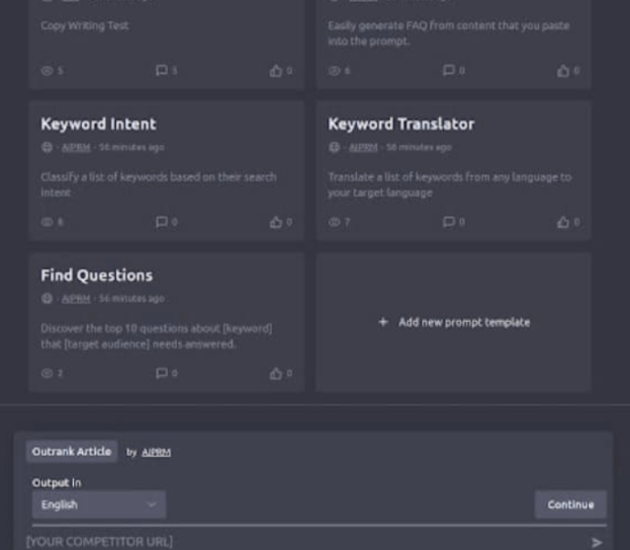 Với AIPRM for ChatGPT là công cụ rất tối ưu với những anh em SEOer. Bởi vì nó cung cấp danh sách các mẫu gợi ý câu hỏi để tối ưu hóa trang và tăng thứ hạng trang web của bạn trên các công cụ tìm kiếm. Ngoài ra, chỉ với một nhấp chuột, bạn đã có thể truy cập các lời nhắc ChatGPT được phân tích rõ ràng cho danh sách các mẫu lời nhắc tuyển chọn dành cho SEO, SaaS, Marketing và nhiều ChatGPT khác.