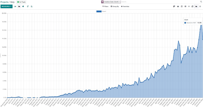 Và một tín hiệu tốt đó là hiện nay 100% tất cả các yêu cầu hỗ trợ đều được tiếp nhận và xử lý một cách nhanh nhất. Đây là một nỗ lực lớn của Odoo để khẳng định việc Odoo giảm giá chứ không giảm chất lượng.