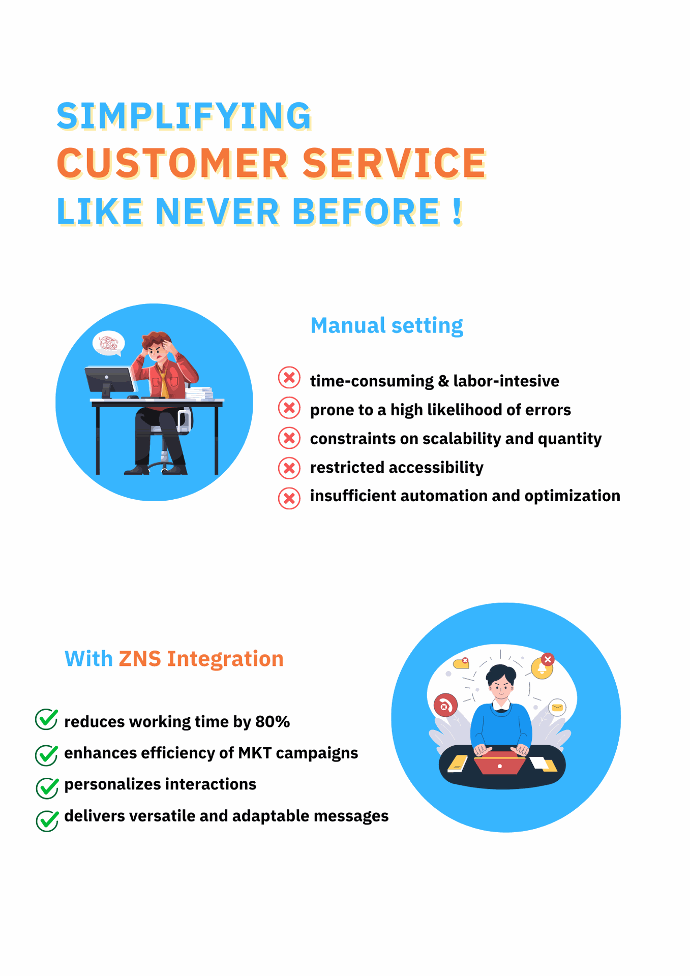 But now, with ZNS, everything has changed! This advanced application allows us to reduce working time by up to 80%, significantly enhancing the effectiveness of our marketing campaigns and streamlining our operations. ZNS's standout feature lies in its ability to personalize interactions with our customers, delivering versatile and adaptable messages tailored to specific target groups.