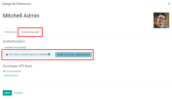 Sử dụng xác thực hai yếu tố là một cách mạnh mẽ để bảo vệ tài khoản người dùng. Odoo HR hỗ trợ 2FA, cho phép bạn yêu cầu người dùng cung cấp một mã xác thực bổ sung sau khi đăng nhập bằng mật khẩu.