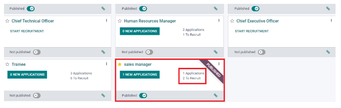 Ở đây chúng ta có thể thấy rằng một số vị trí công việc có dải băng với tiêu đề Đã xuất bản. Điều đó có nghĩa là các vị trí công việc này đã được công bố trên trang web.