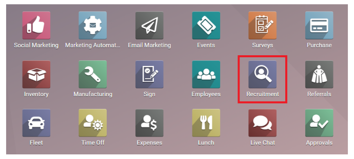 Bây giờ hãy nhấp vào biểu tượng module Tuyển dụng và mở trang tổng quan.