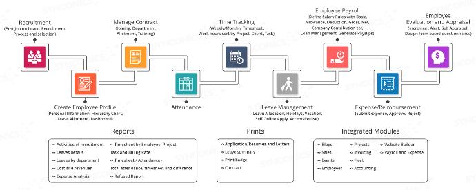Module Human Resources của Odoo tích hợp tốt với các module khác trong hệ thống, như Quản lý Dự án và Quản lý Khách hàng. Điều này đồng nghĩa với việc người quản lý có cái nhìn toàn diện về hoạt động của doanh nghiệp và tương tác dễ dàng hơn giữa các bộ phận.