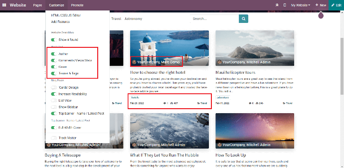 Blog là một công cụ quan trọng cho chiến lược content marketing, module blog của Odoo có một số tính năng sau: