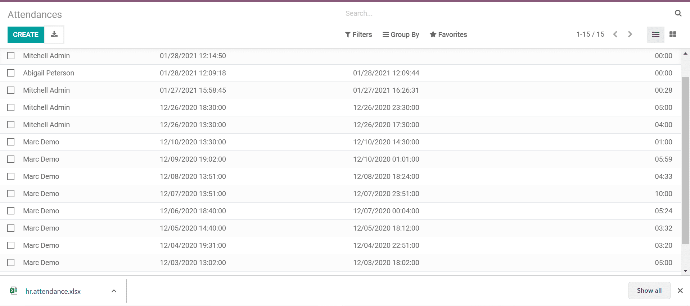 Bằng cách sử dụng Odoo Attendances, nhân viên có thể dễ dàng check-in và check-out với giao diện đơn giản, chỉ với một cú nhấp chuột.
